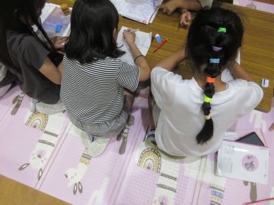こちらはみんなで仲良く宿題をしています。仲良しのお友達