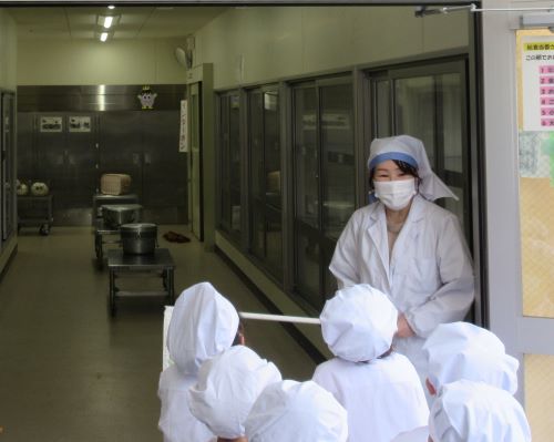 みんなで事前に給食室を見学しました。