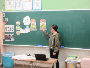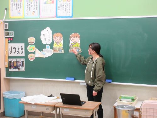 実際に給食エプロンを着たりしながらとてもわかりやすく