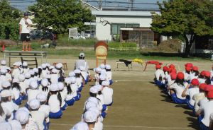 認した後、応援練習にも取り組みました。幼稚園の子どもた