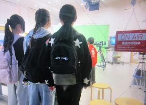 写真はテレビ放送の体験をしているところです。