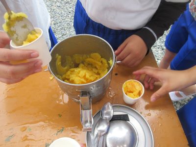 みんな仲良くシャーベットづくりです。甘くて冷たくて、