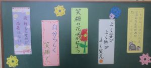 に贈りたい言葉を書いて廊下に掲示しています。読むだけで